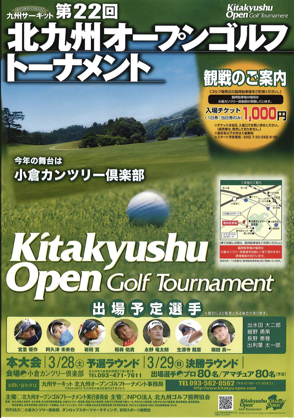 来る3月28日(土)より2日間、当倶楽部にて「北九州オープンゴルフトーナメント本大会」が開催されます。